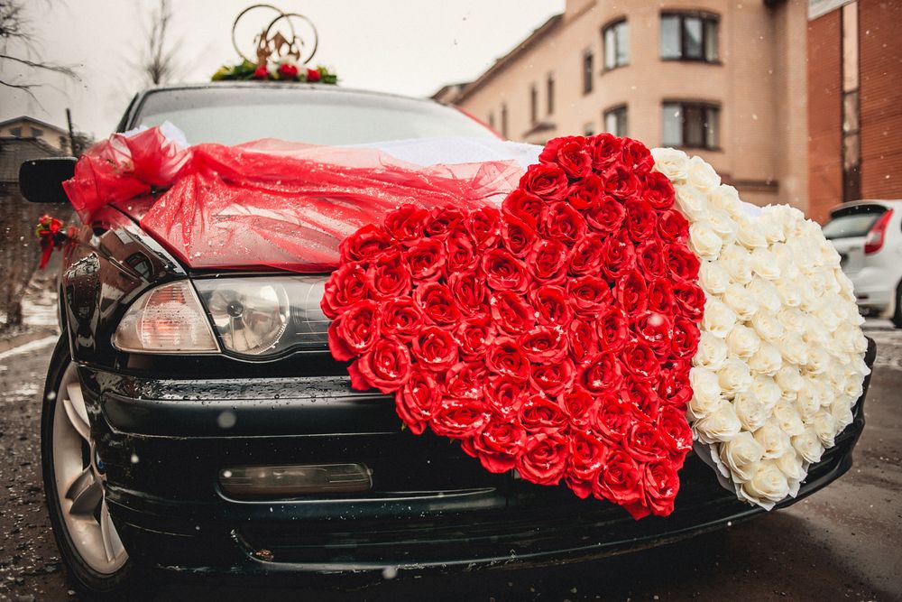 Fialová girlanda na bílém autě